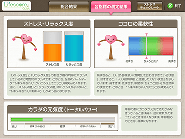 指先の指尖脈波を測定するセンサを使って、約1分間で「ストレス・リラックス度」と「ココロの柔軟性」の2つの指標から、ココロのバランスをチェックするシステムです。当社指定のAndroidタブレットにソフトをインストールした状態で、納品いたします。 ※本システムは病気を診断するものではありません。